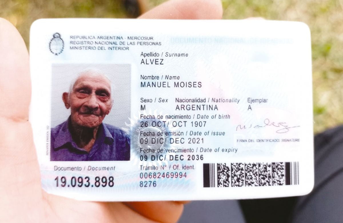 El 12 de enero de este año, Manuel recibió por primera vez su DNI, antes de ello era inexistente para el sistema y al mismo tiempo estaba imposibilitado de tener pensiones y jubilación. Fue en el marco del Programa Indocumentado Cero, del Registro Provincial de las Personas, que depende del Ministerio de Gobierno.