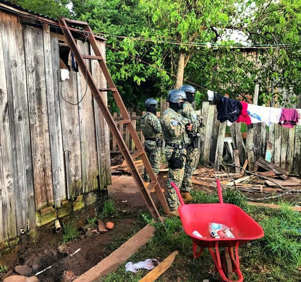Con la orden de allanamiento del Juzgado correspondiente, los agentes irrumpieron en las moradas esta mañana, deteniendo a los implicados. Durante los allanamientos, se incautaron una escopeta calibre 36 con cargador, una escopeta tipo Winchester calibre 20, una TV de 32 pulgadas, una motosierra, tres motoguadañas, una bomba de agua, una garrafa, cinco machetes y un celular sujeto a peritaje, entre otros objetos.