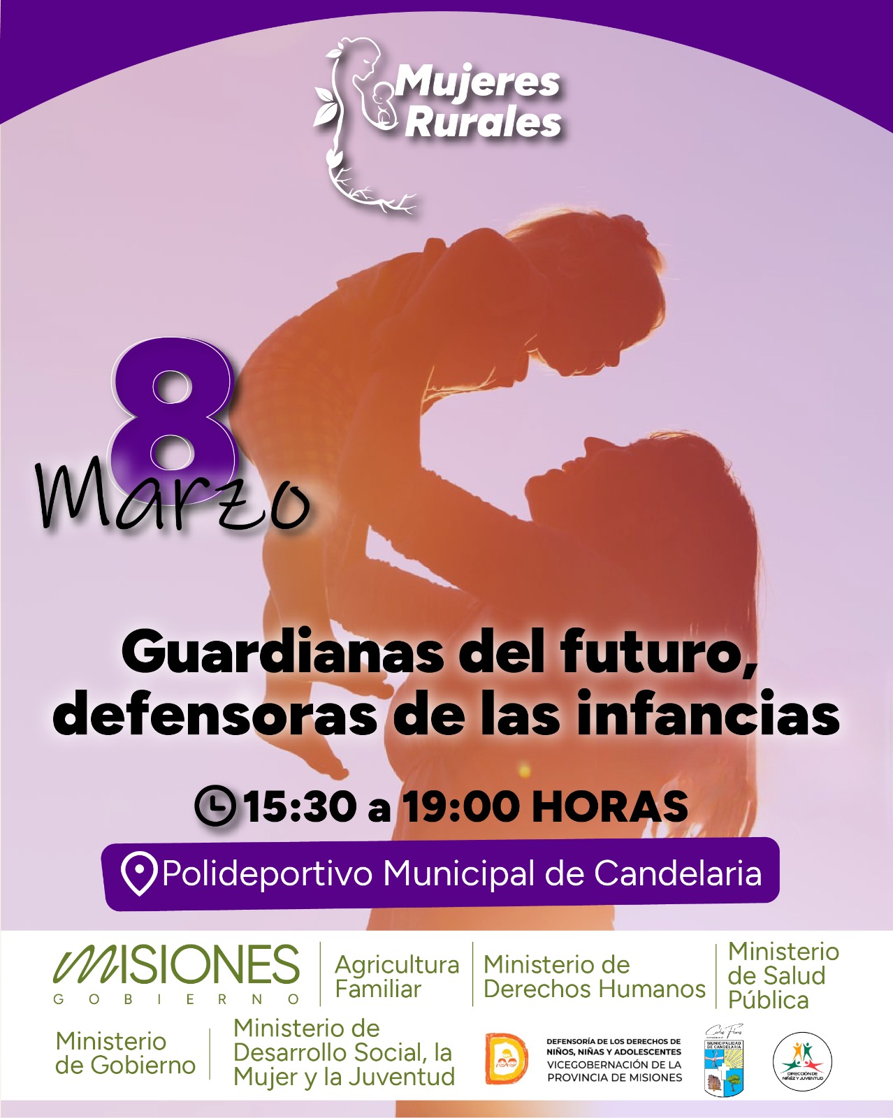 Candelaria, Misiones – En conmemoración del Día Internacional de la Mujer, el próximo 8 de marzo de 2025 se llevará a cabo un encuentro especial titulado “Mujeres Rurales: Guardianas del Futuro, Defensoras de las Infancias” en Candelaria. Este evento, que comenzará a las 15:30 horas, combinará reflexión, actividades recreativas y paneles temáticos para destacar el rol de las mujeres rurales como líderes en la protección y promoción de los derechos de las infancias y adolescencias.