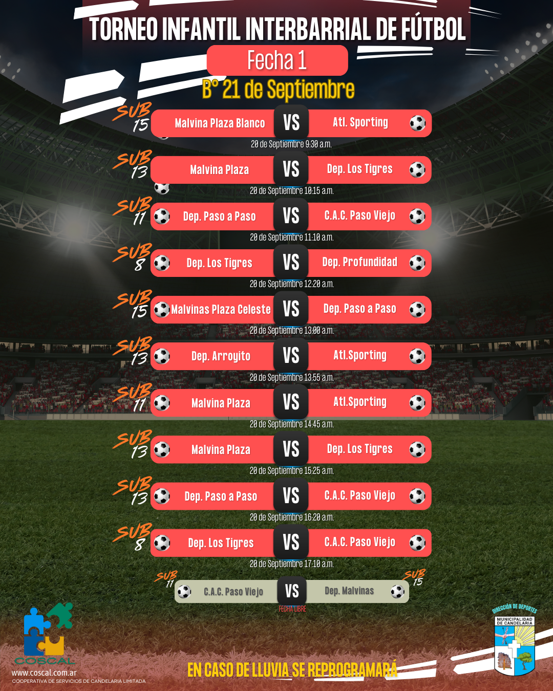 👉 En caso de lluvia, los partidos serán reprogramados.