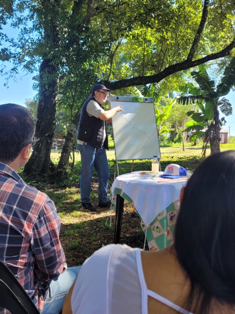 La jornada estuvo a cargo del Tec. Julio Chesani (INTA Cerro Azul), quien brindó una explicación técnica detallada sobre cómo manejar el agua disponible, proteger las nacientes y aprovechar el caudal natural sin obras costosas: