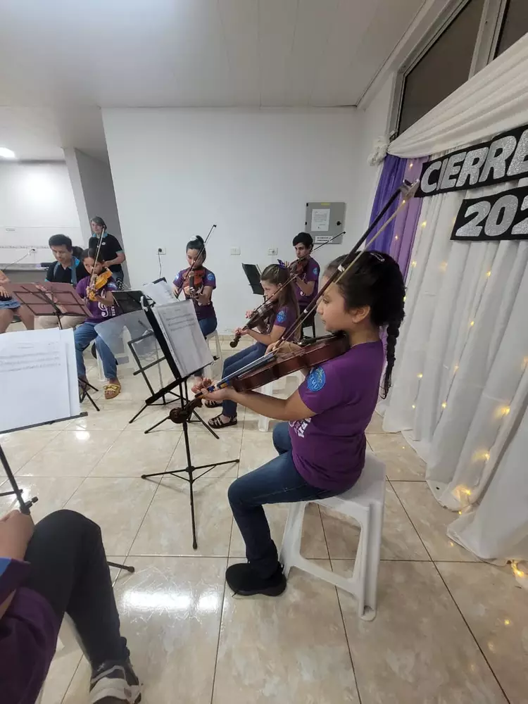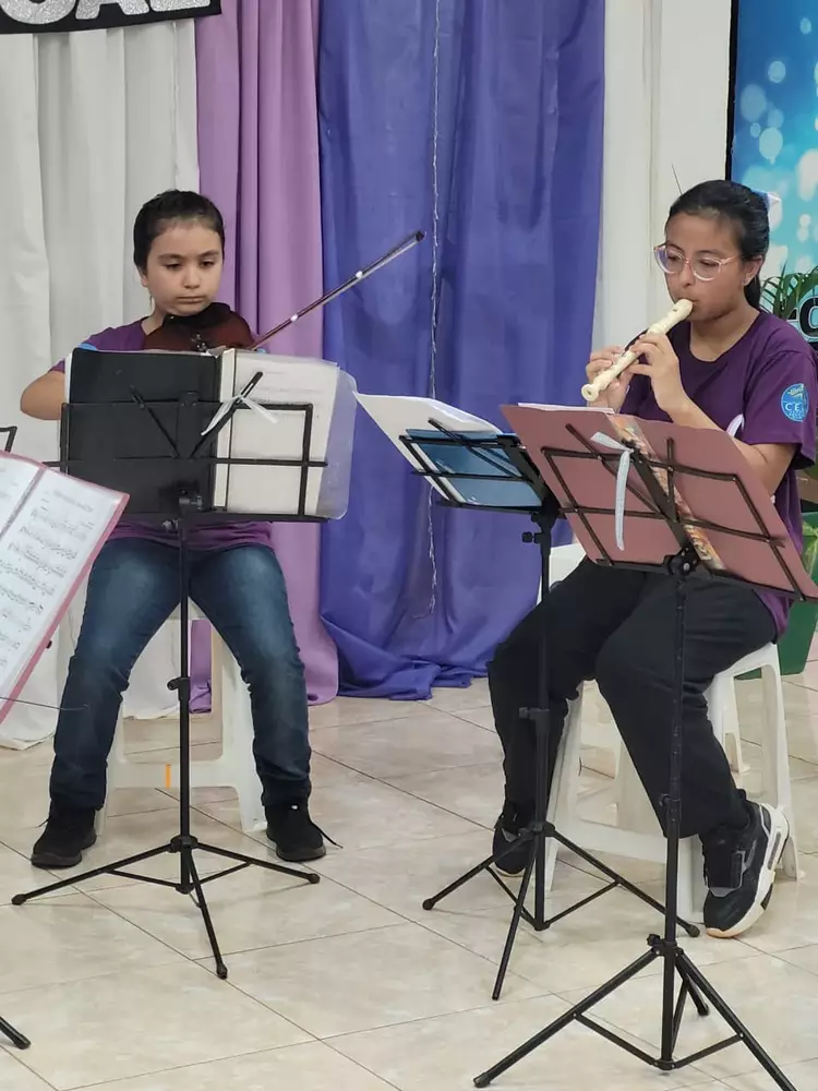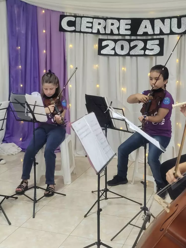 Este año participaron alrededor de 20 estudiantes, entre guitarra y orquesta, quienes mostraron sus avances en un evento donde cada instrumento —violín, violonchelo, flauta traversa y guitarra— expuso su complejidad y evolución.